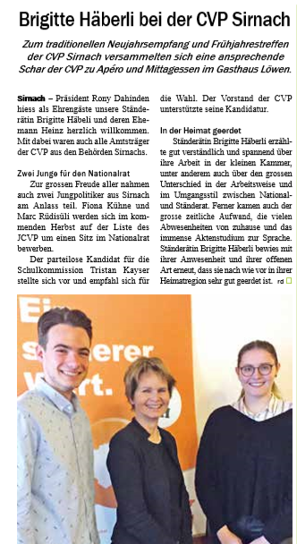 | Thurgauer Zeitung 11. Juli 2023 | Gegen Heiratsstrafe, für tiefere Kassenprämien: Sirnacher präsidiert Die Junge Mitte Schweiz | Zum Bericht |
